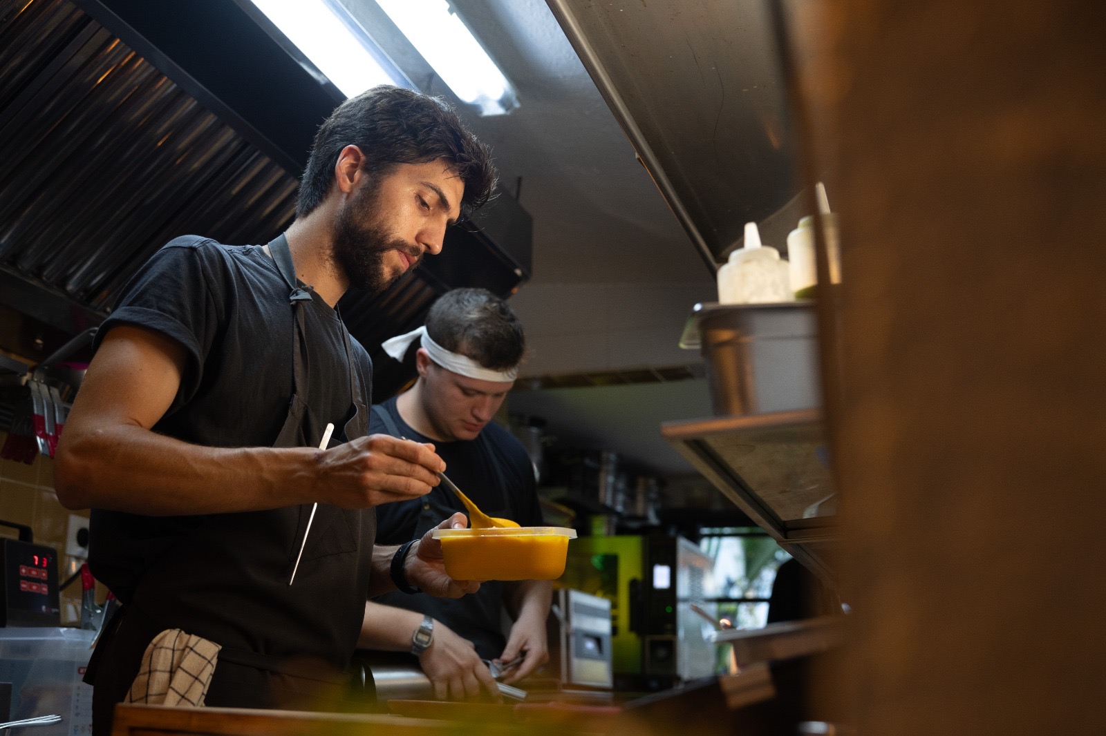 Les Nenes Bar neix el 2015 amb l’objectiu de promoure la vida social envoltats de música, platets i còctels. Un local informal amb una terrassa interior, on el menjar i beure són l’excusa i medi perfecte per disfrutar de l’ambient que creen la Marta i l’Adrià. A ritme de Marijata, la Marta a la sala procura encaixar les peces que conformen aquest petit local. Marcada per la freqüència dels altaveus i la sinergia entre cuina i barra, ofereix l’estranya i confosa sensació d’estar a casa i de viatge aquella mateixa nit. L’Adrià, amb una clara mirada cap al continent asiàtic, defensa una cuina de territori. Les Nenes Bar ofereix una carta amb una llista de plats pensats per a ser compartits. Amb ingredients ecològics i responsables, elabora receptes d’inspiració asiàtica adaptades al producte local i de temporada. Per acompanyar la nit trobaràs un llistat de còctels i vins ecològics